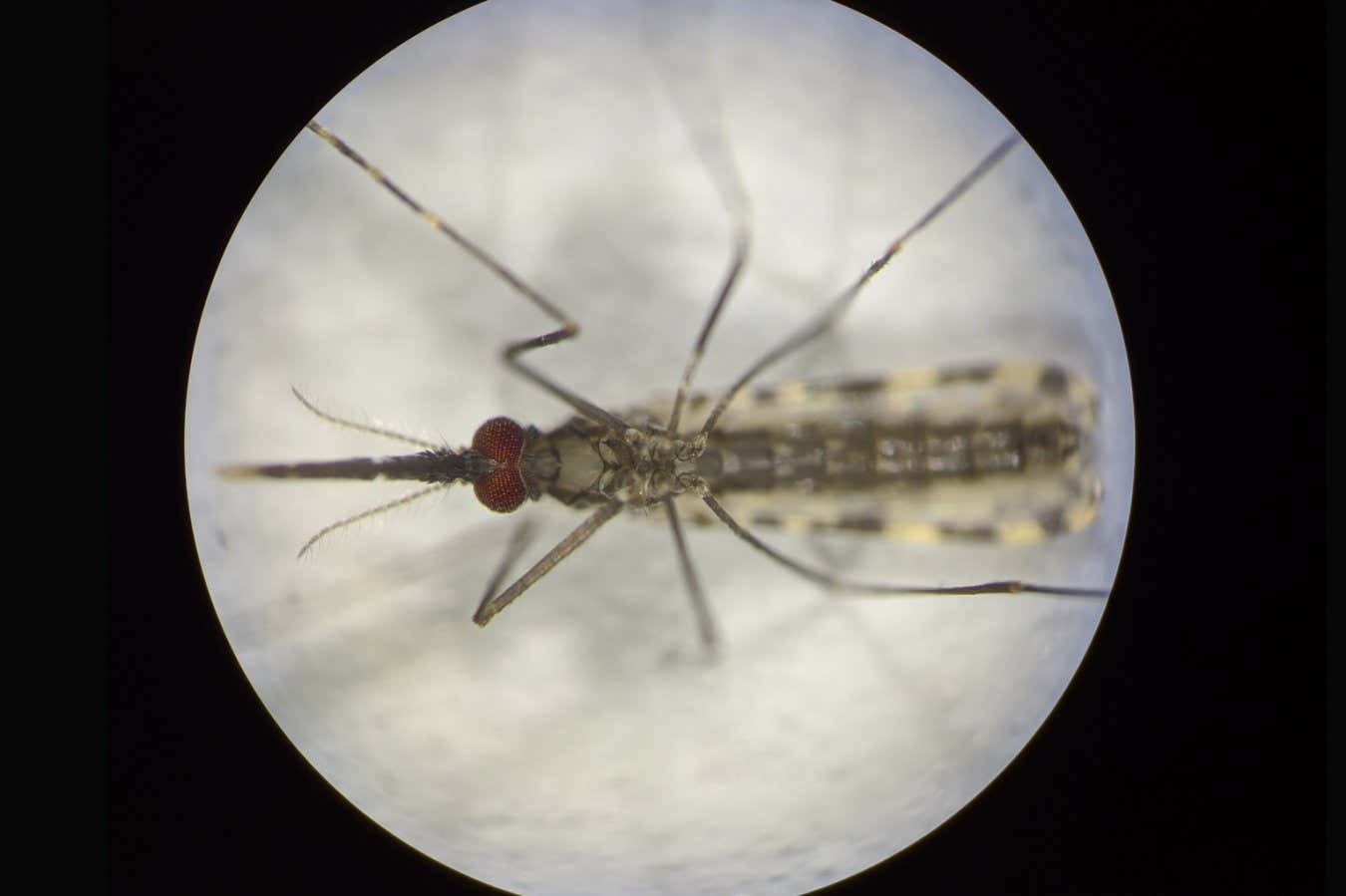 A female Anopheles gambiae mosquito. Its red eyes indicate the presence of a modified gene intended to confer malaria resistance